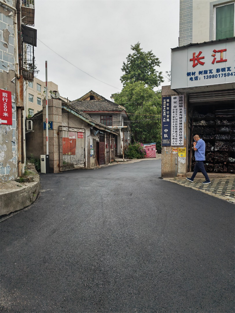 康藏路85号大院建成于上世纪60年代,属老旧大院。大院入口及院内路面多处破损、坑洼不平,严重影响城市整体形象和居民出行。得知情况后,交建集团蜀通公司持续对接该大院帮扶单位市财政局,共同商定路面整治方案。在市财政局持续配合和大力支持下,蜀通公司出资2.5万元,利用短短3天时间,完成300余平方路面改造和沥青铺设。