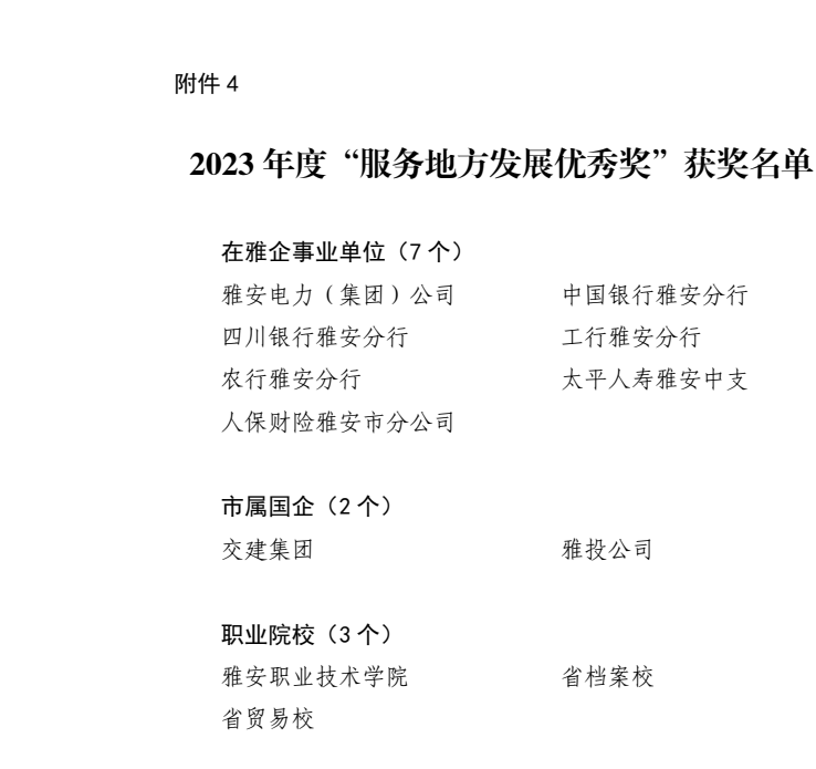近期,中共雅安市委办公室、雅安市人民政府办公室印发《关于2023年度县(区)、市级部门和单列考评单位目标绩效综合考评结果的通报》,大红鹰dhy(中国)集团取得2023年度“服务地方开展优秀奖”。