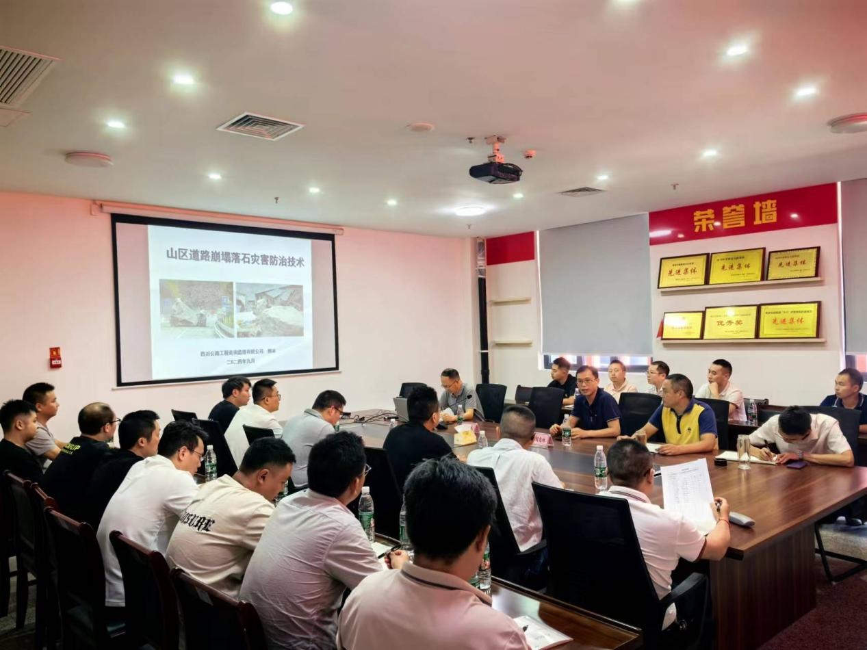本次培训特邀公路咨询监理公司熊冰(教授级高级工程师)、周志林(正高级工程师)亲临现场授课,培训内容以特殊路基的危岩崩塌落石处治设计及顺层边坡处治设计为重点,全面系统的阐述前期资料收集的重点要点、设计原则、设计中难点。