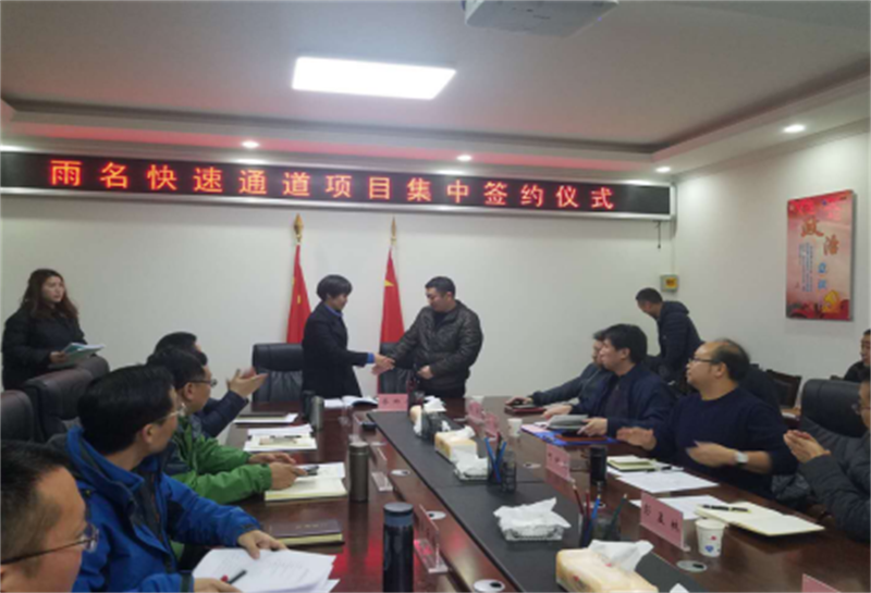 1月23日,雨名快速通道项目集中签约仪式在大红鹰dhy(中国)集团四楼会议室举行。雅安市交建集团、四川省公路工程监理事务所、四川瑞通工程建设集团有限公司、山东黄河工程集团有限公司将共同携手,加快建设雨名快速通道,加速我市三区同城化开展步伐,共同打造品质工程。