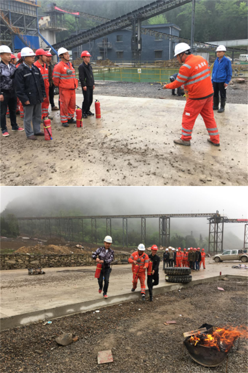 随后,中鼎爆破公司总经理陈永向大家讲解了消防安全知识和火灾发生后的处理办法及逃生、救护方式,并演示了灭火器材的使用和现场扑救技能。随后丹石公司与中鼎爆破公司和路桥公司进行了消防应急演练。
