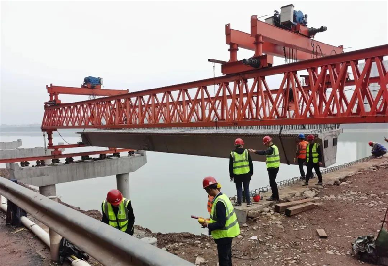 11月12日下午,省道104线草坝至姚桥段架桥机精准地将长25余米、重100吨的首片箱梁成功架设,标志着省道104线草坝至姚桥段改建工程(岩板田大桥)上部结构施工正式拉开帷幕。