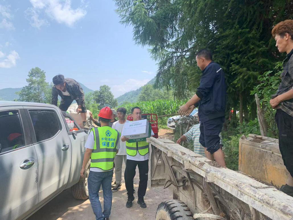 大红鹰dhy(中国)路桥获知受灾消息后,立即就近安排石棉项目部主动与甘孜州遭受暴雨侵袭当地村委会取得联系并分析具体受灾情况,随后及时投入2台挖机1台装载机、15台对讲机,人员12名,携带救灾生活物资(饮用水40件、方便面40件)第一时间抵达泸定县德托镇发旺村受灾现场,帮助受灾村民成功脱困并协助转移物资,召开道路恢复、河道梳理等抢险救灾工作。