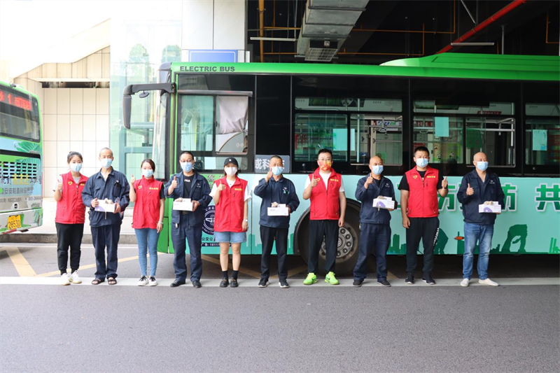 最后,青年团员们带着亲手制作的40份防疫香囊、藿香正气液、口罩等防疫消暑慰问品,来到市区内的各个公交车站点召开了志愿者服务活动。团员志愿者们亲手为公交驾驶员师傅送上了慰问物质,关切询问他们的作息时间、身体状况等,并感谢他们为城市开展和群众出行付出的辛苦劳动,同时叮嘱大家在高温季节一定要注意劳逸结合,实行防疫和防暑措施。