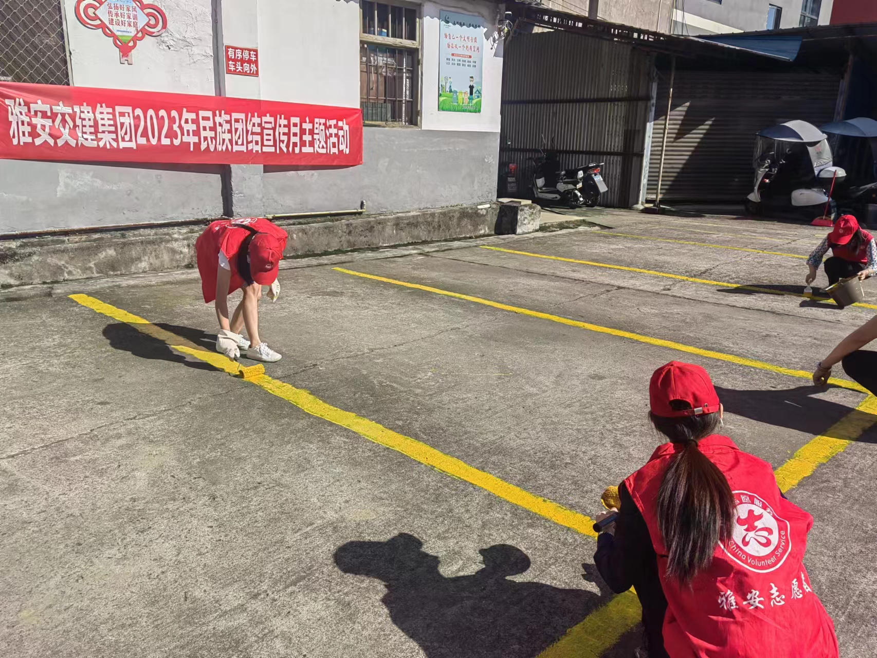 活动现场分宣传讲解、上门服务、卫生清洁、停车场油漆添补4个小组。顺利获得发放宣传资料、现场答疑解惑、卫生死角清扫、停车线添补等活动,向小区住户、街道过往市民、车站乘客等群众宣传民族团结示范市创建工作相关问题和民族团结相关知识,进一步提升群众对民族团结进步的认识,激发居民促进共同繁荣开展的主动意识,携手推进民族团结进步创建,助力雅安市创建民族团结进步示范市工作。