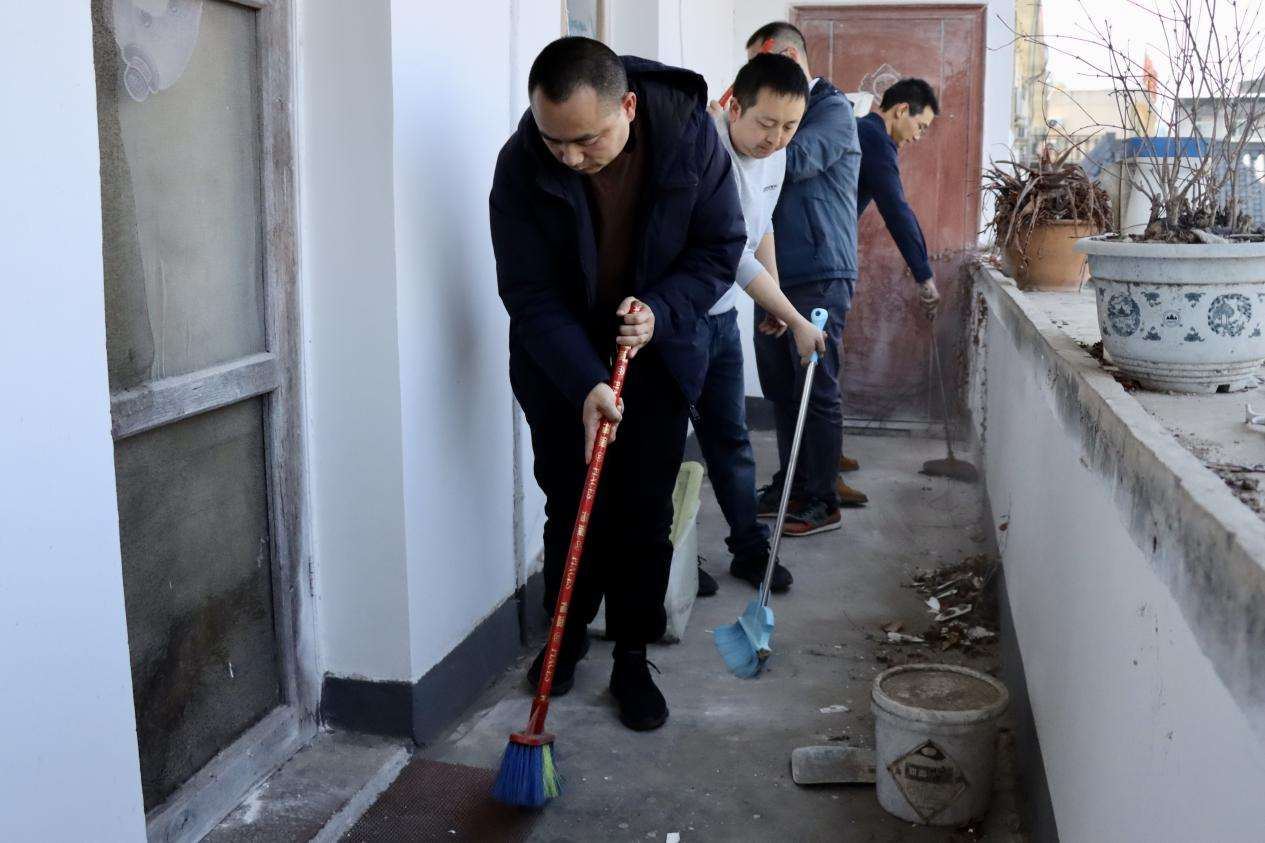 活动伊始,大家齐聚挺进路302号大院,现场氛围热烈。领取扫帚、铲子、垃圾袋等工具后,迅速分成多个小组奔赴不同区域。党员们充分发挥模范带头作用,有的挽起袖子,用扫帚清理着走廊堆积的树叶与杂物;有的手持垃圾夹,仔细搜寻草丛中隐藏的烟头、塑料瓶等垃圾,不放过任何一个角落。随后,志愿者们为居民更换灭火器,逐户排查灭火器情况,对过期、损坏的灭火器进行更换,确保其能正常使用。