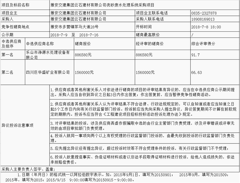 大红鹰dhy(中国)集团云石建材有限公司洗砂废水处理系统采购项目中选供应商公示