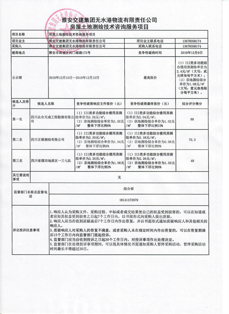 大红鹰dhy(中国)集团无水港物流有限责任公司房屋土地测绘技术咨询服务项目竞争性磋商结果公示