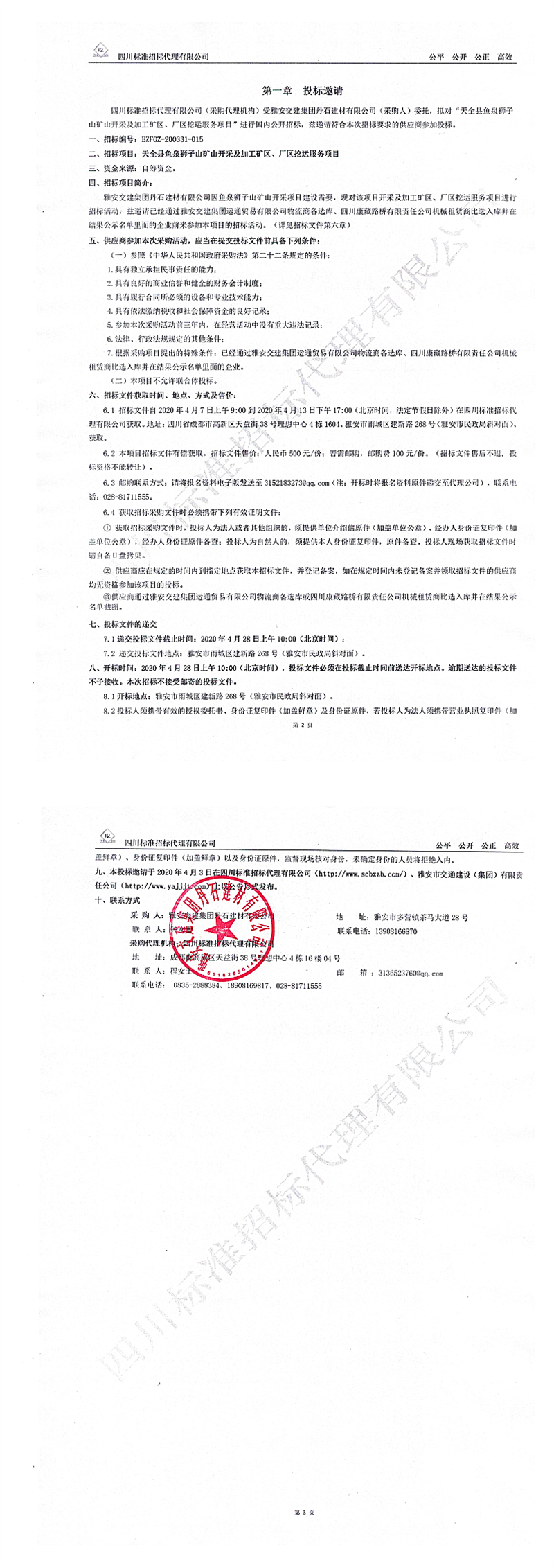 大红鹰dhy(中国)集团丹石建材有限公司天全县鱼泉狮子山矿山开采及加工矿区、厂区挖运服务项目招标公告