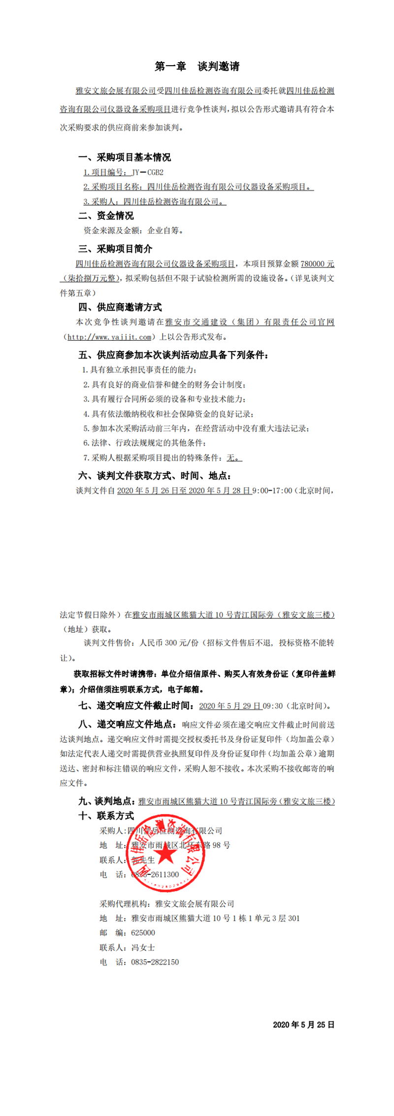 四川佳岳检测咨询有限公司仪器设备采购项目竞争性谈判公告