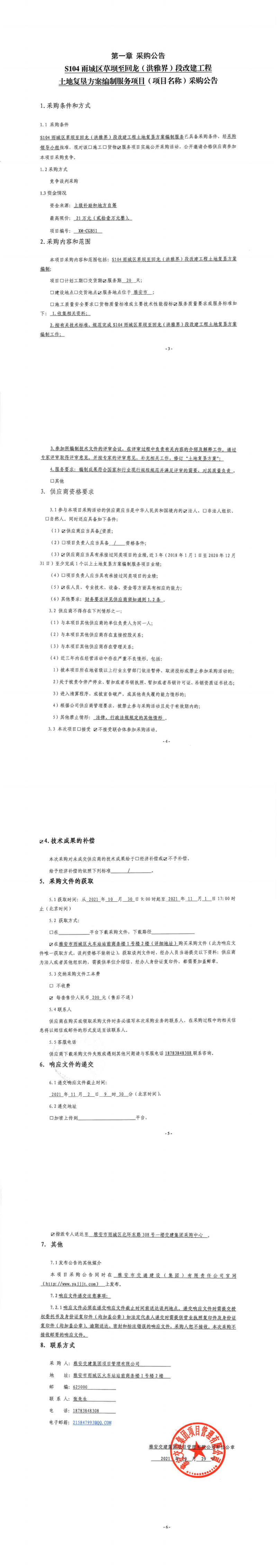 大红鹰dhy(中国)集团项目管理有限公司S104雨城区草坝至回龙(洪雅界)段改建工程土地复垦方案编制服务项目采购公告