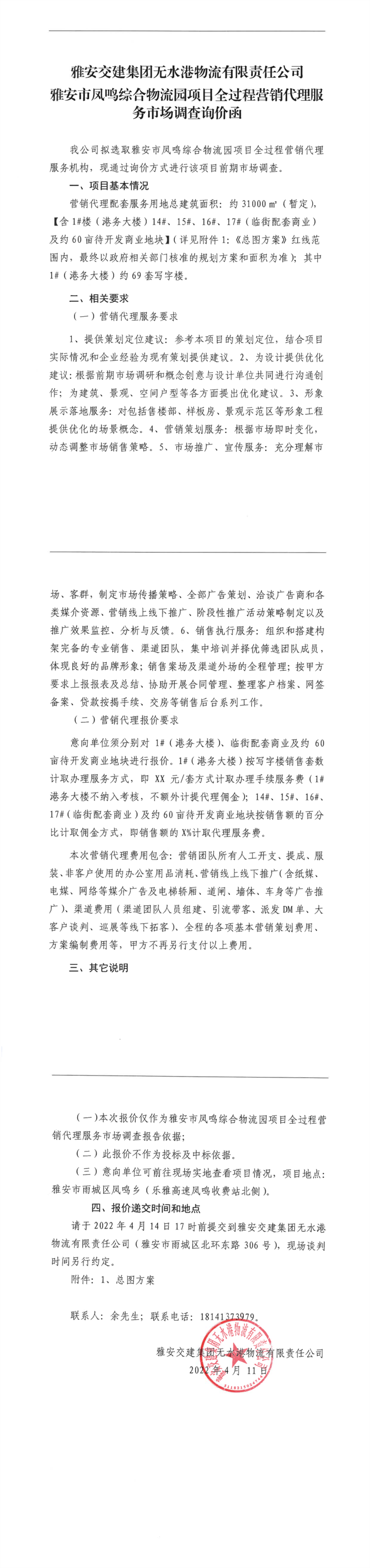 大红鹰dhy(中国)集团无水港物流有限责任公司雅安市凤鸣综合物流园项目全过程营销代理服务市场调查询价函