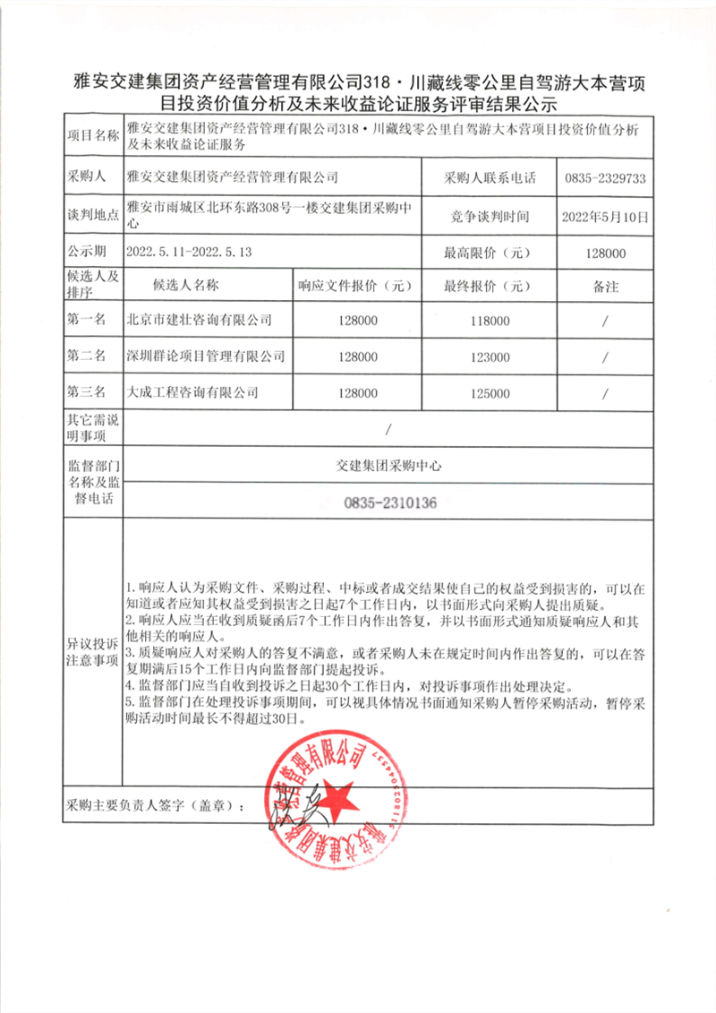 大红鹰dhy(中国)集团资产经营管理有限公司318·川藏线零公里自驾游大本营项目投资价值分析及未来收益论证服务评审结果公示