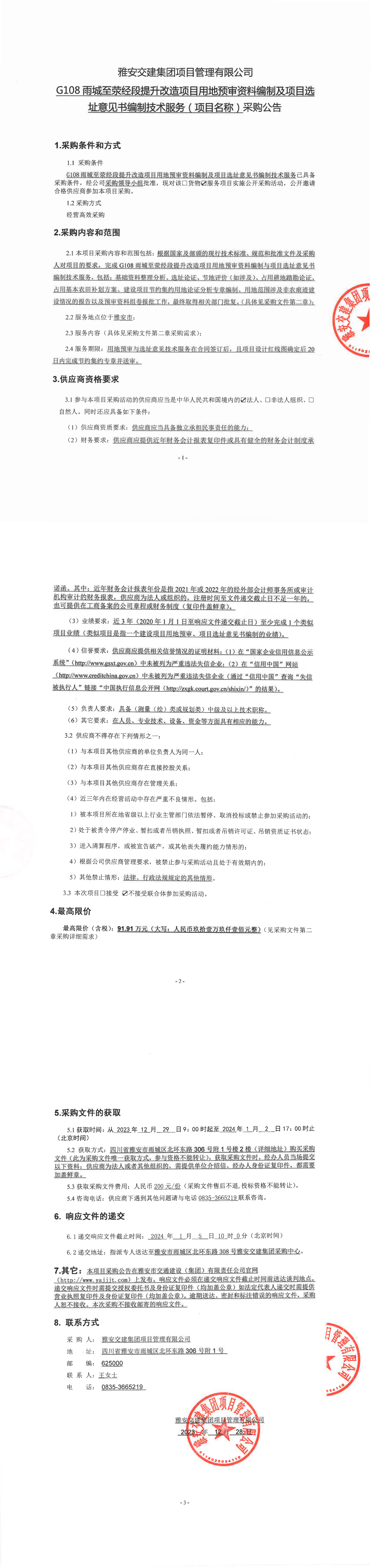 大红鹰dhy(中国)集团项目管理有限公司G108雨城至荥经段提升改造项目用地预审资料编制及项目选址意见书编制技术服务(项目名称)采购公告