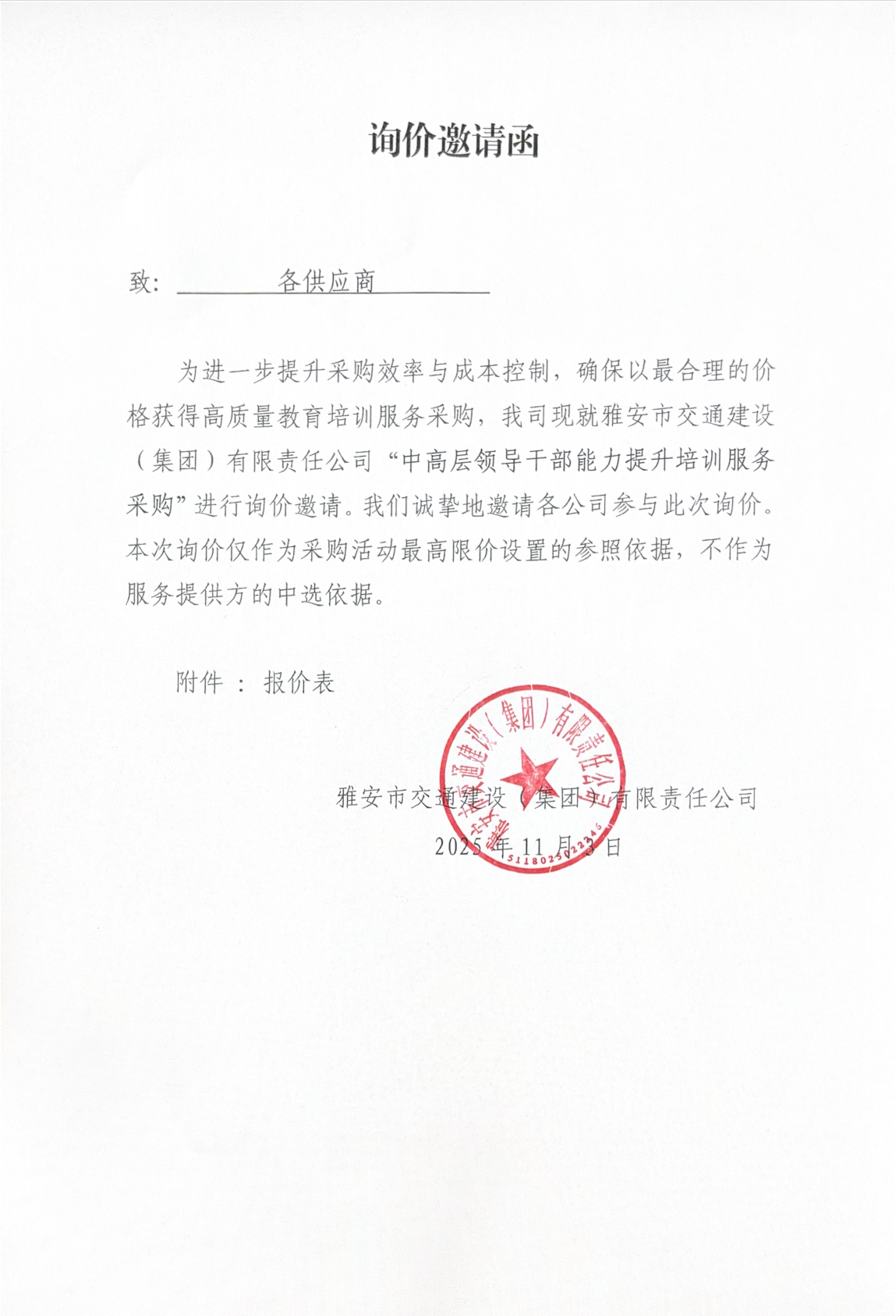 中高层领导干部能力提升培训服务采购询价邀请