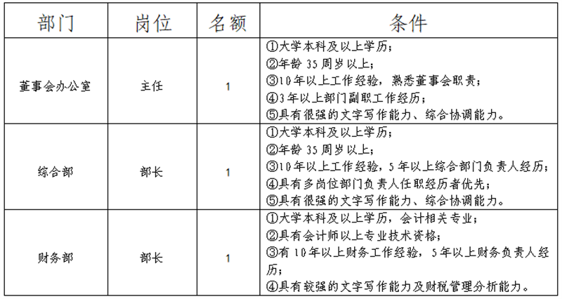 雅安市交建集团是市属重点国有企业,主要从事交通基设施建设、交通运输物流、建筑材料生产、资产经营管理、检验检测服务等业务,根据公司业务开展需要,向社会公开招聘中层正职3名。现将有关事项公告如下: