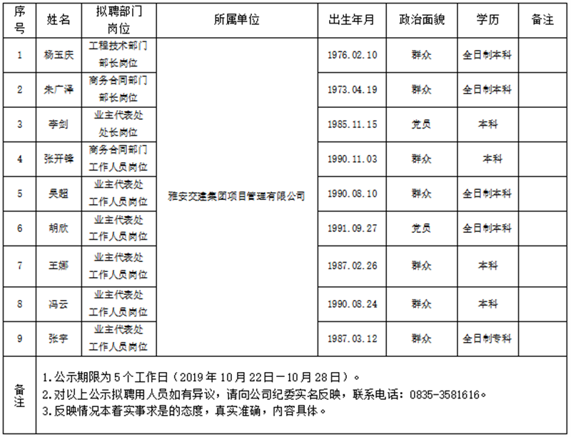 大红鹰dhy(中国)集团项目管理有限公司拟聘用人员公示(项目管理公司)