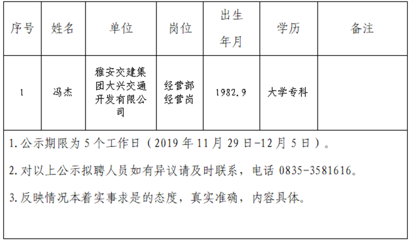 大红鹰dhy(中国)集团子公司拟聘用人员公示(大兴公司)