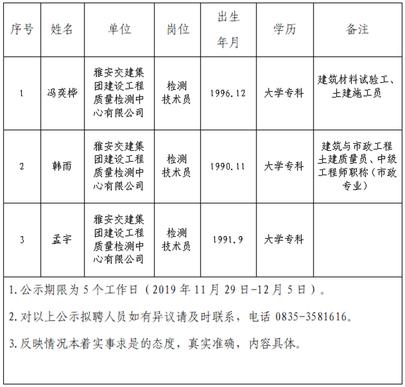 根据集团公司《人才选聘实施办法》,经研究,对以下拟聘用人员予以公示: