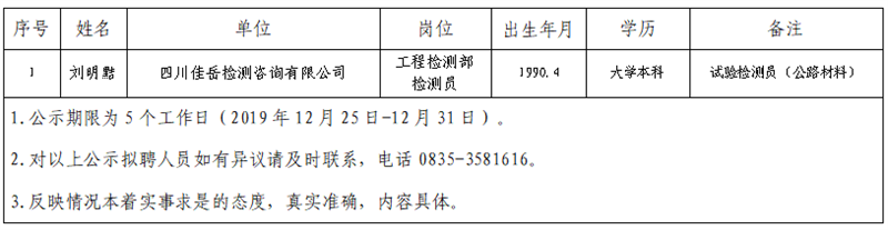 根据集团公司《人才选聘实施办法》,经研究,对以下拟聘用人员予以公示: