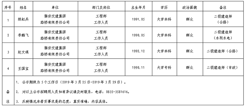 大红鹰dhy(中国)集团子公司拟聘用人员公示(路桥公司)