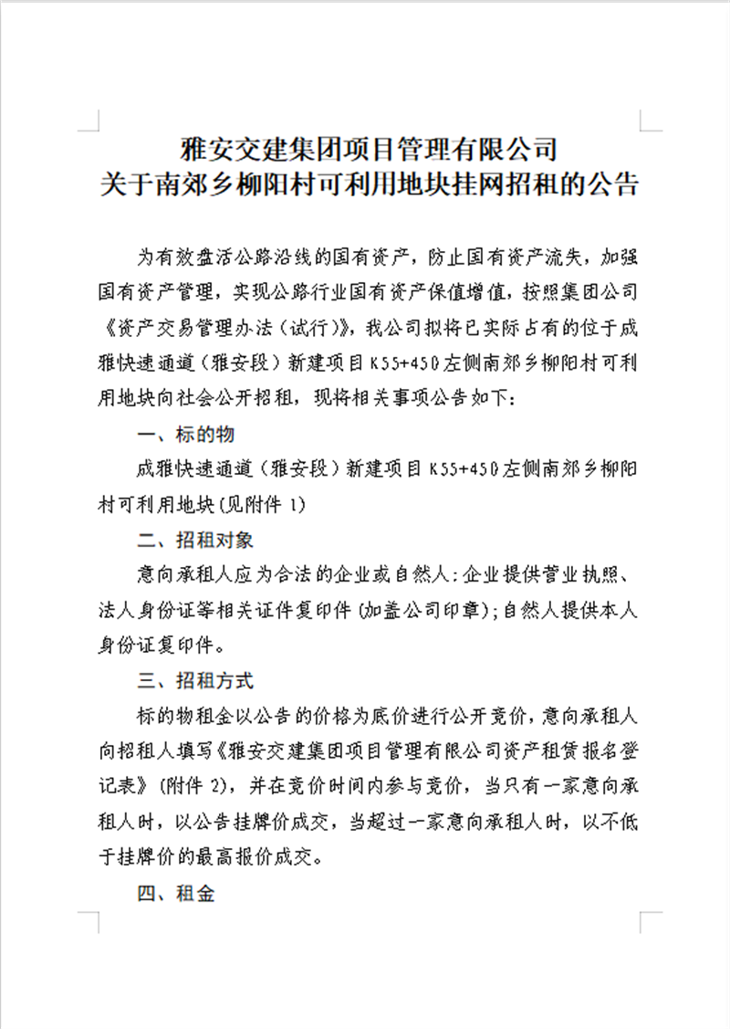 大红鹰dhy(中国)集团项目管理有限公司 关于南郊乡柳阳村可利用地块公开招租的公告资料