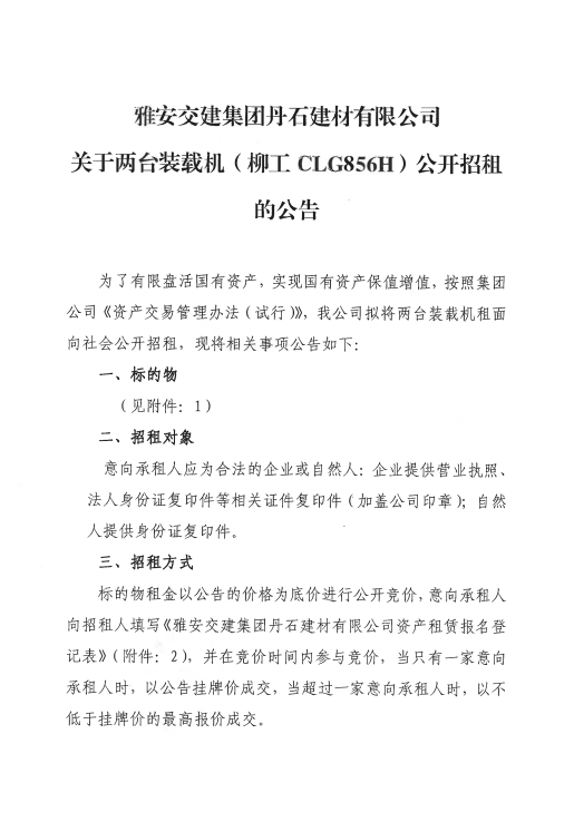 大红鹰dhy(中国)集团丹石建材有限公司关于2台装载机公开招租的公告附件