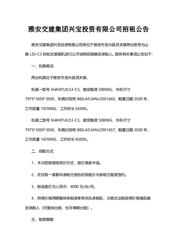 大红鹰dhy(中国)集团兴宝投资有限公司招租公告