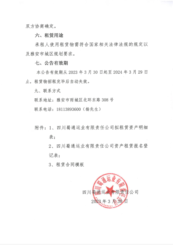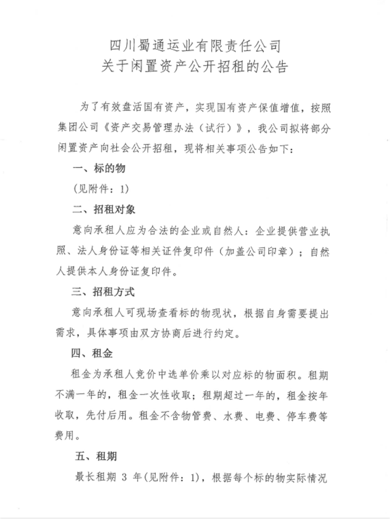 蜀通运业有限责任公司关于闲置资产公开招租的公告附件