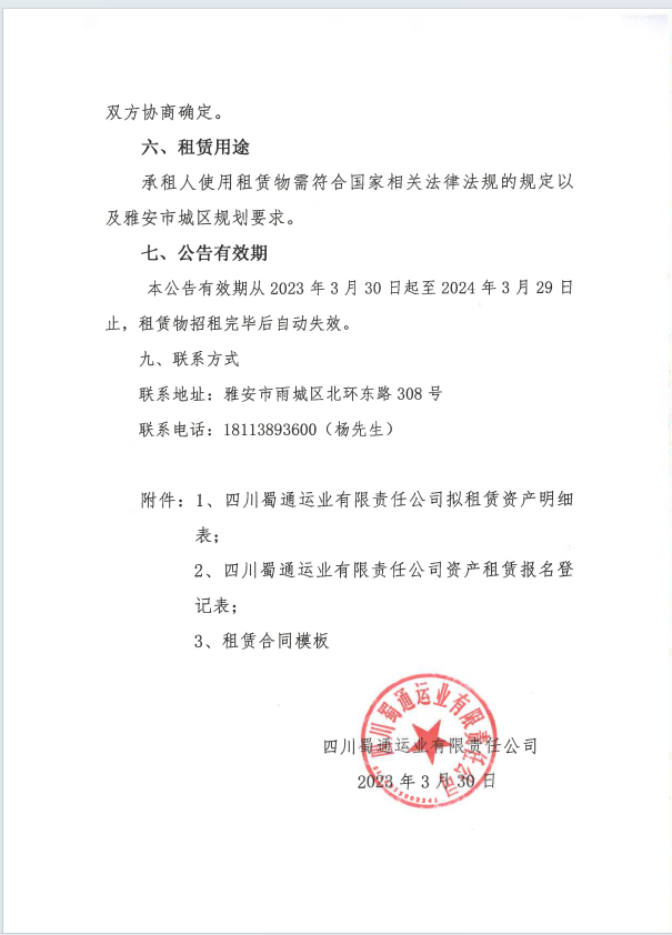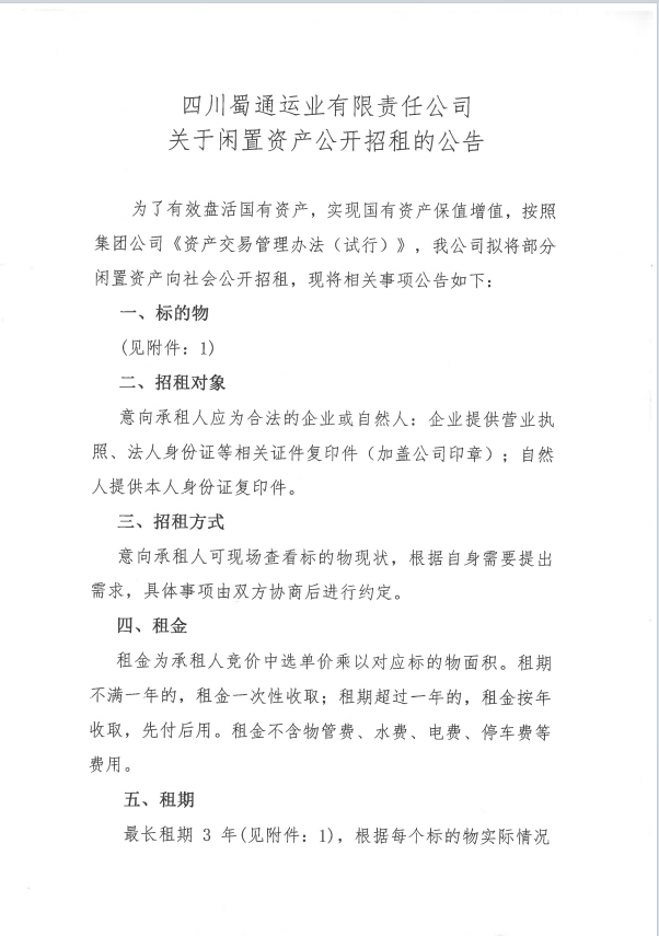 蜀通运业有限责任公司关于闲置资产公开招租的公告附件