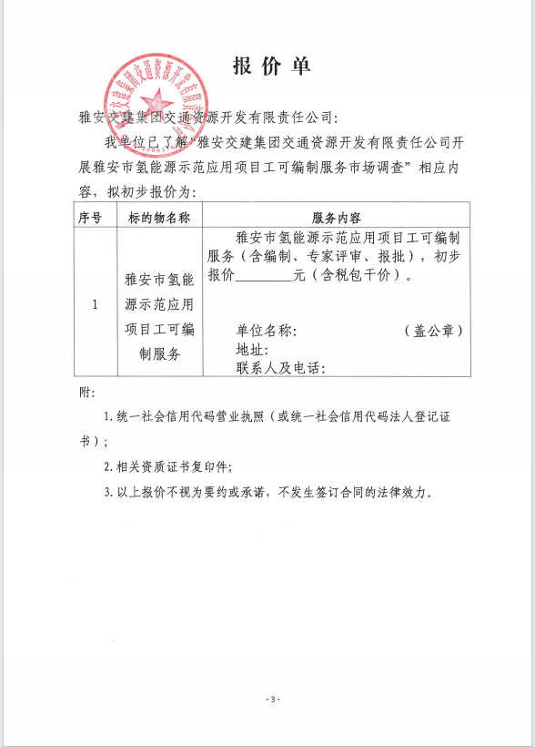 大红鹰dhy(中国)集团交通资源开发有限责任公司雅安市氢能源示范应用项目工可编制服务市场调查公告