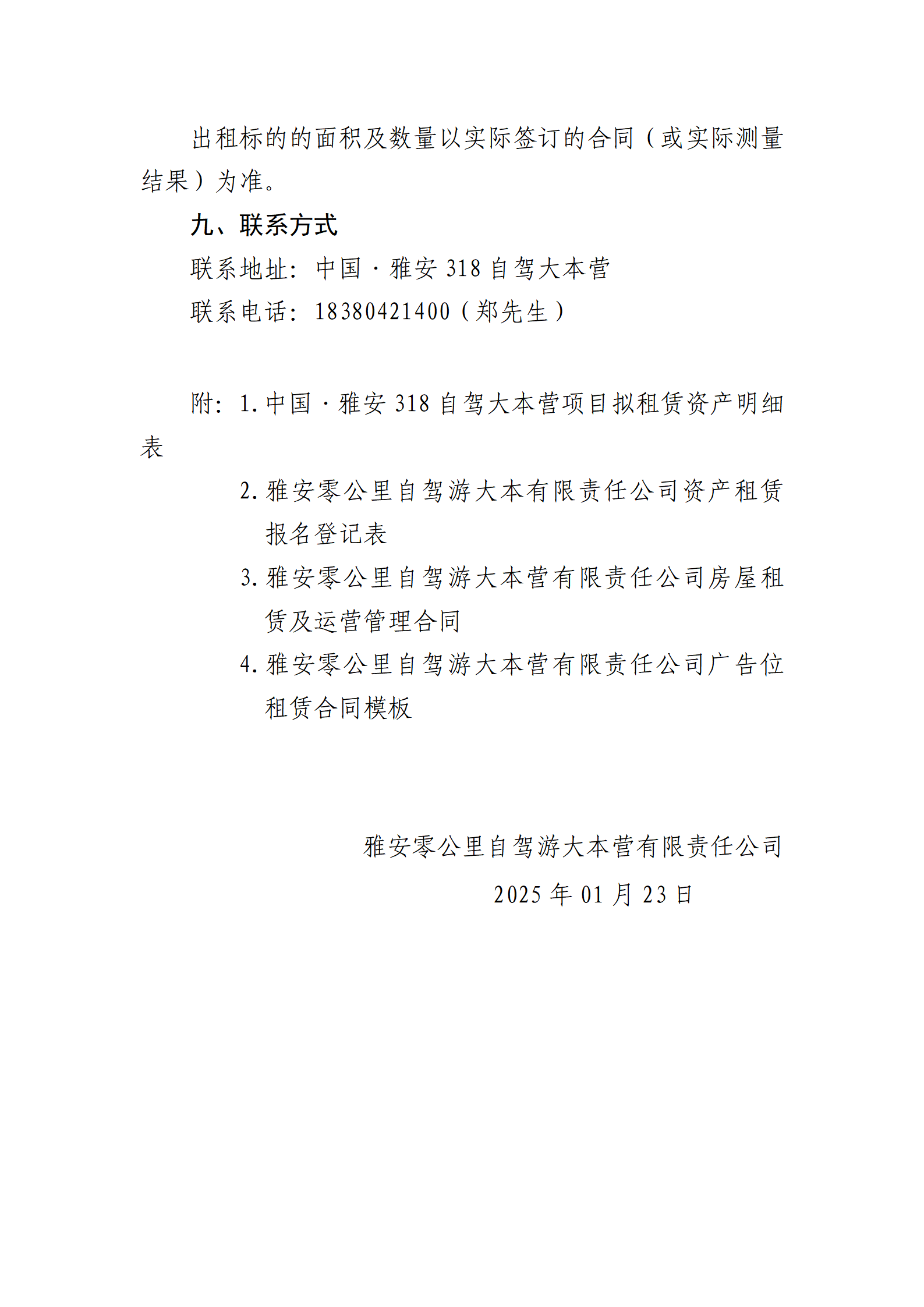 雅安零公里自驾游大本营有限责任公司 关于中国·雅安318自驾大本营招租的公告