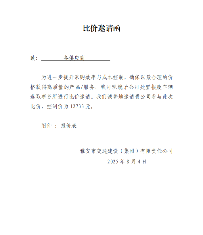 关于选取处置报废车辆事务所的比价邀请函