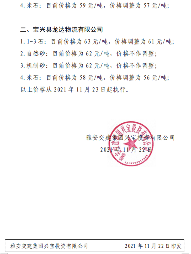 大红鹰dhy(中国)集团兴宝公司关于调整成品料销售价格的通知(2021.11.23)