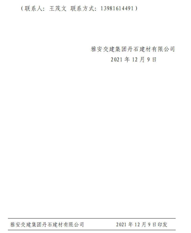 大红鹰dhy(中国)集团丹石公司关于调整砂石成品骨料销售价格的通知(2021.12.9)