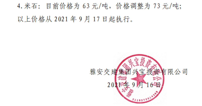 大红鹰dhy(中国)集团云石公司关于调整成品料销售价格的通知(2021.9.13)