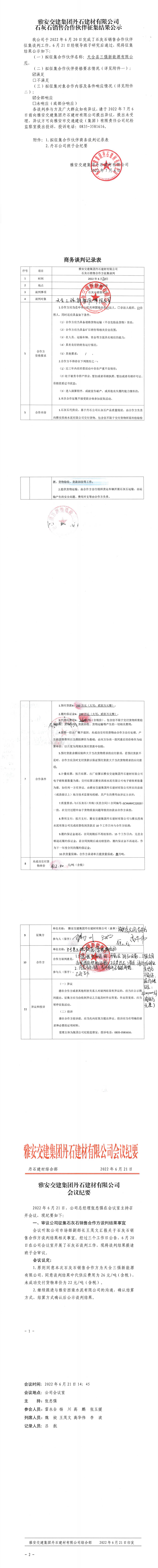 丹石石灰石销售合作伙伴征集结果公示